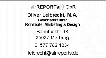 Der Nutzung von im Rahmen der Impressumspflicht veröffentlichten Kontaktdaten durch Dritte zur Übersendung von nicht ausdrücklich angeforderter Werbung und Informationsmaterialien wird hiermit ausdrücklich widersprochen. Die Betreiber der Seiten behalten sich ausdrücklich rechtliche Schritte im Falle der unverlangten Zusendung von Werbeinformationen, etwa durch Spam-Mails, vor.